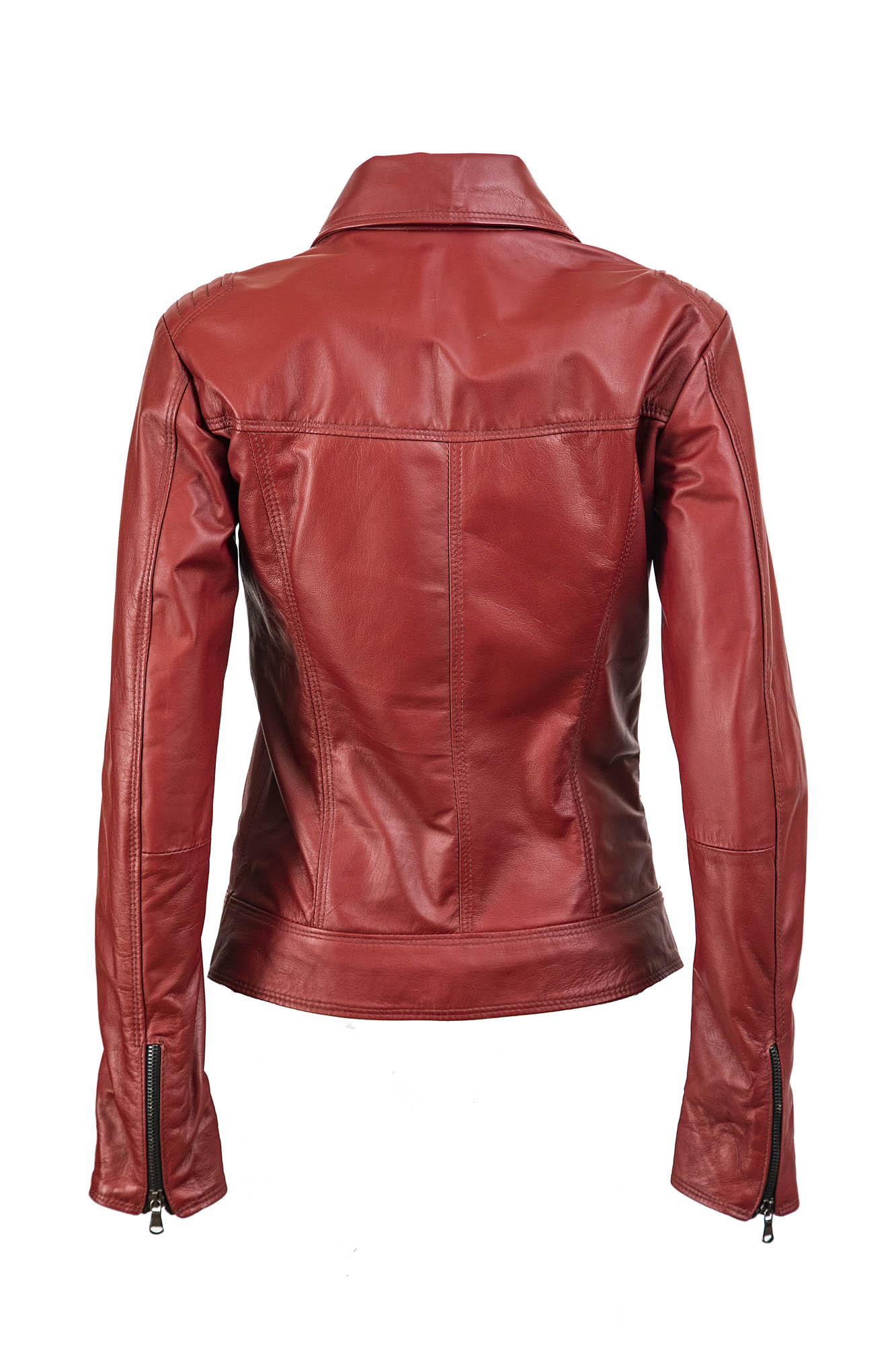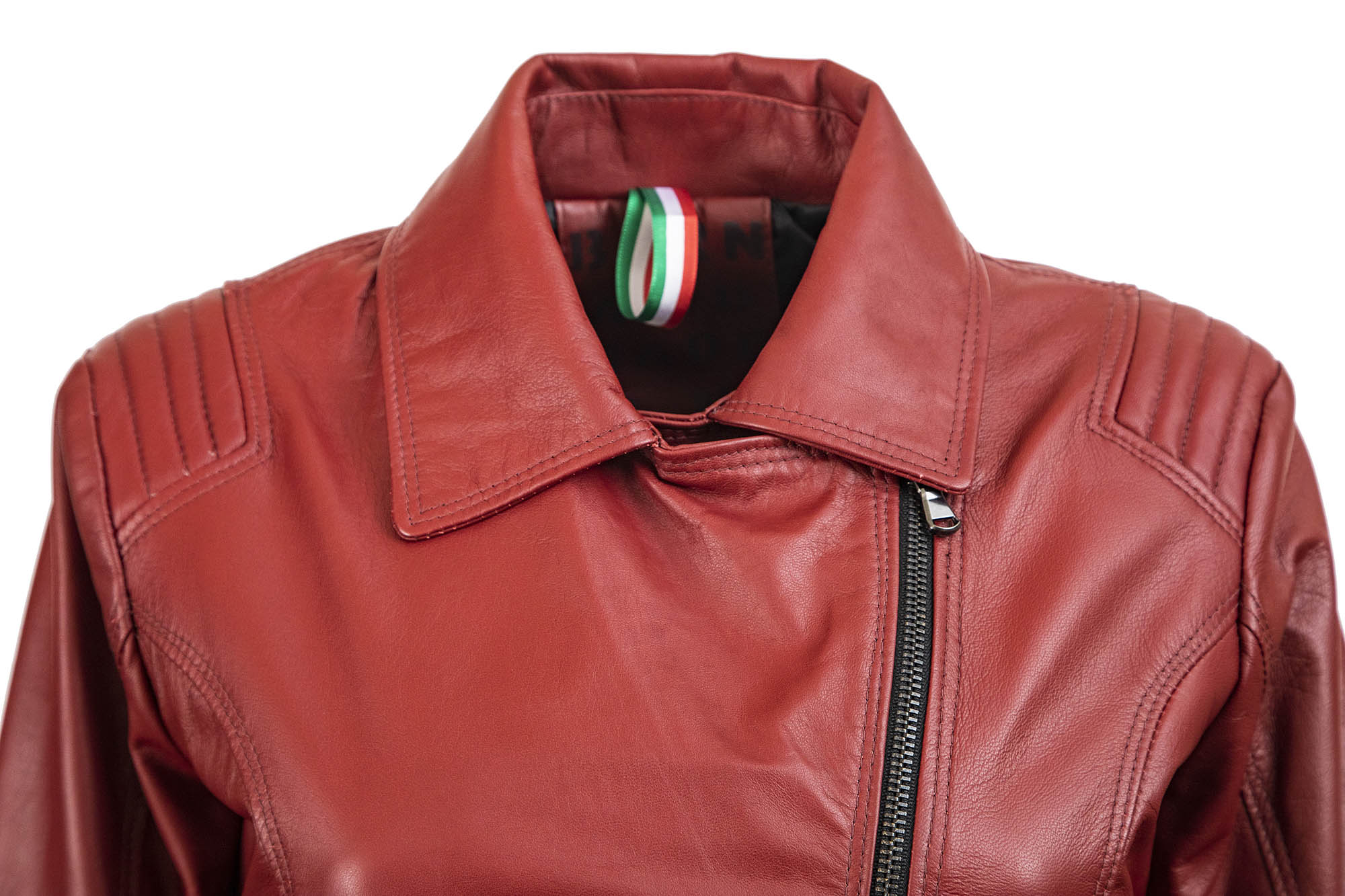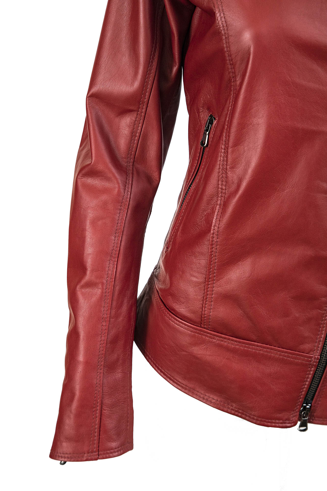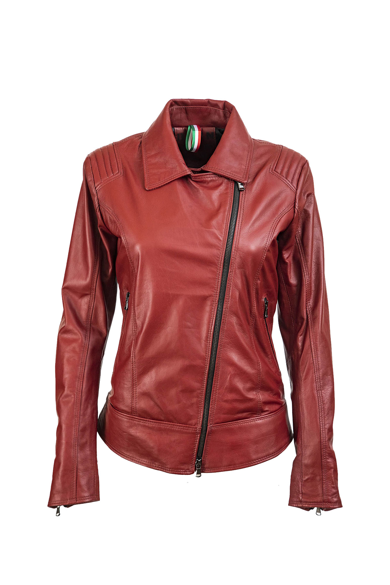 Giubbotto di pelle, chiusura con zip trasversale, colletto.