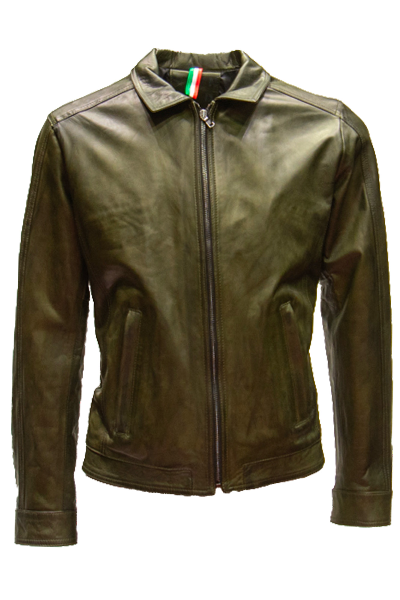 Giubbotto di pelle tamponato a mano con chiusura zip e colletto, due tasche. Imbottitura Thermore.