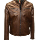 Giubbotto di pelle tamponato a mano con chiusura zip, quattro tasche con chiusura zip.