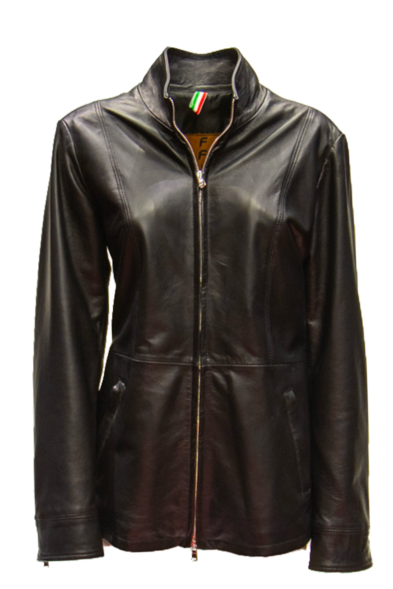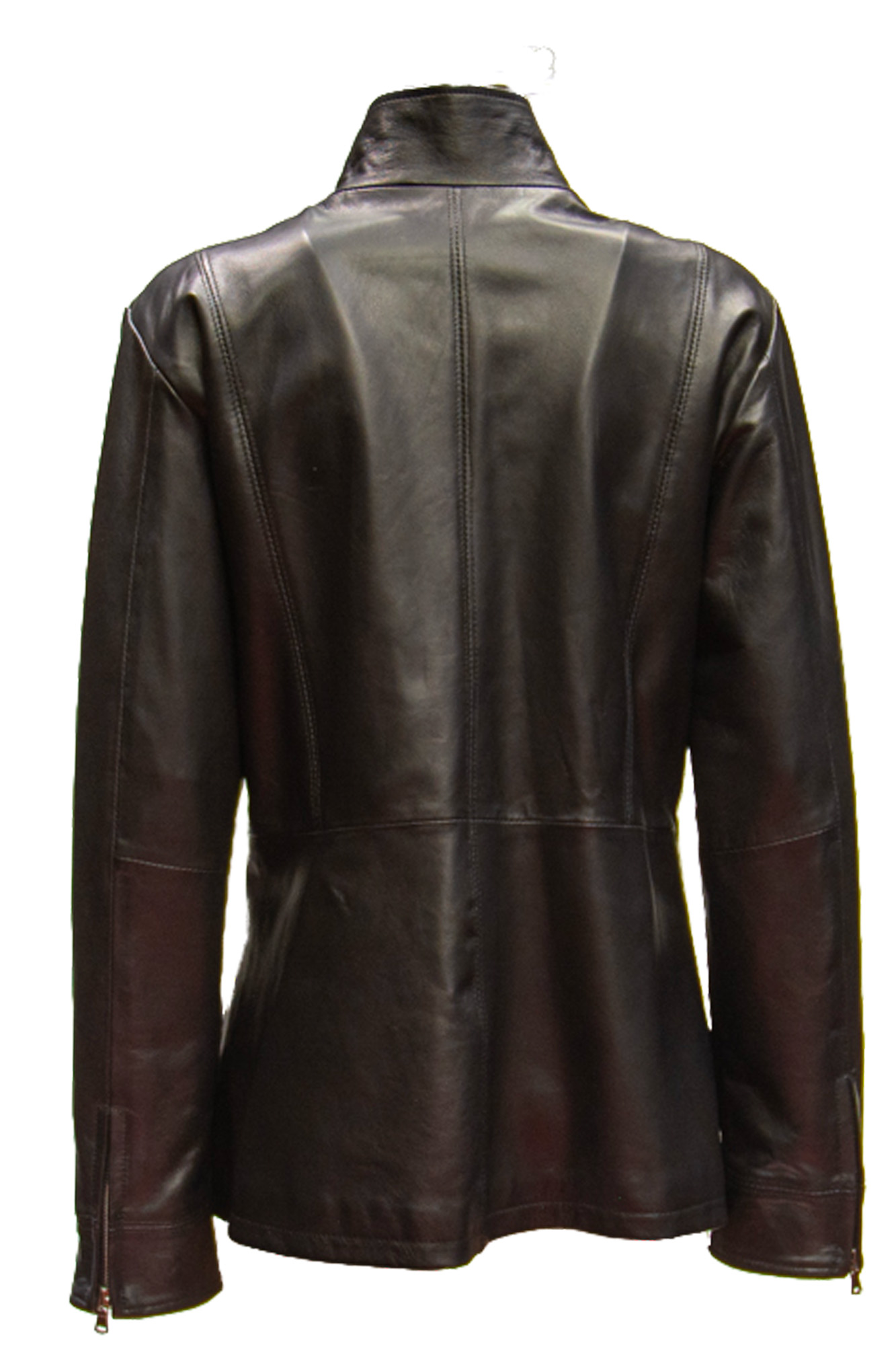 Giacca di pelle tamponata a mano, vestibilità oversize, chiusura zip.